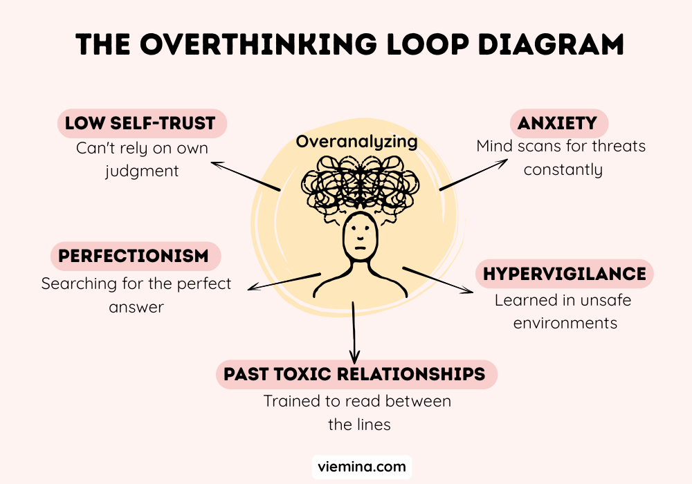 Overanalyzing is the habit of examining a situation, conversation, or decision far beyond what is useful — looking for hidden meanings, revisiting the same material repeatedly, and generating anxiety without reaching any productive conclusion. Unlike careful thinking, overanalyzing doesn’t lead anywhere useful. It loops, consuming mental energy without providing the clarity or certainty it’s looking for.